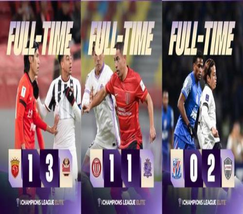 成都蓉城1-1广岛三箭,亚冠连续3轮不胜。上海申花0-2输给神户胜利船,遭遇亚冠2连败!